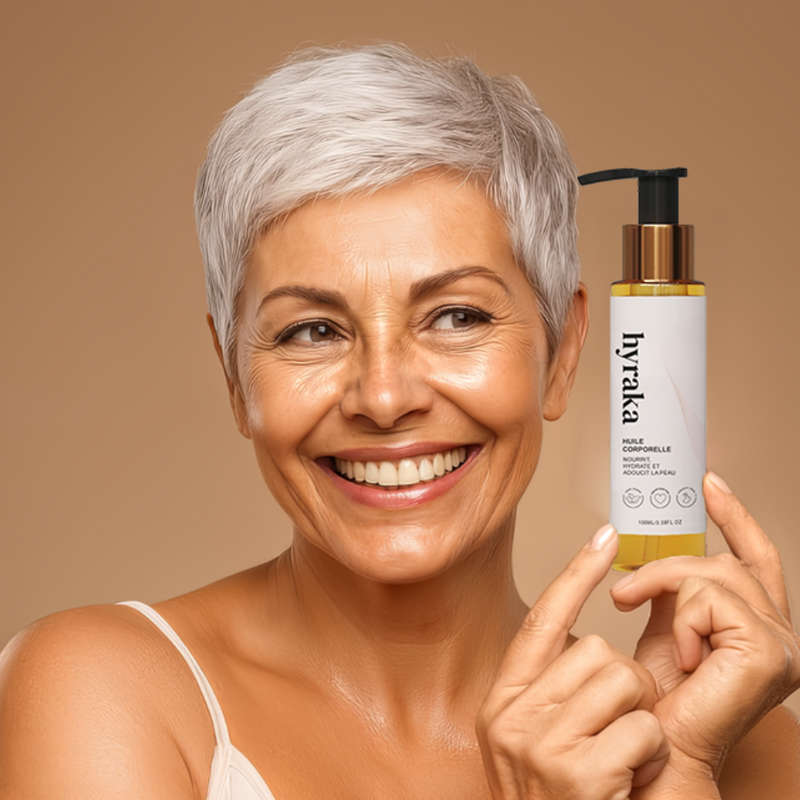 Je recommande l'Huile HYRAKA pour le vieillissement cutané. L'association huile d'onagre et rose musquée répond aux besoins des peaux matures. Mes patientes remarquent une amélioration globale. Sa texture pénètre sans film gras avec des résultats progressifs.